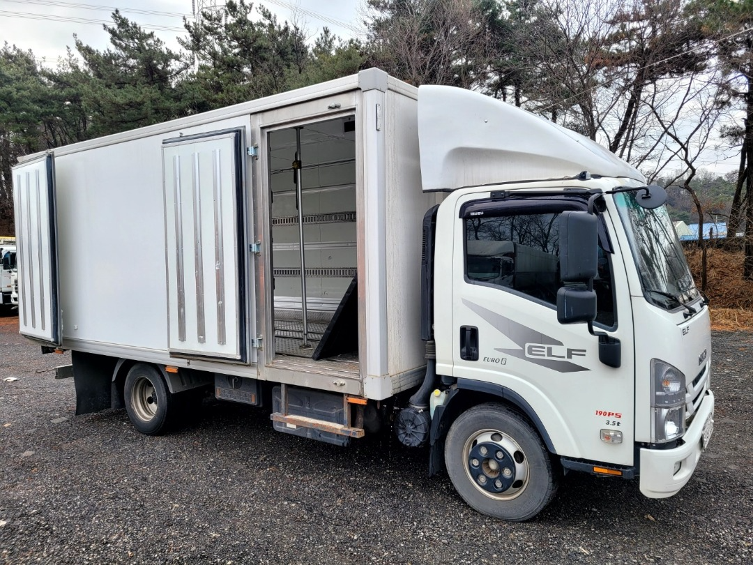 이스즈 3ㆍ5톤 냉동탑/2020년8월190마력/ 등록/ 광폭 빠랫트. 옆문 장착 키로수 100.922 키로 상태최상 내경 탑내경 높이 2.000 내경 길이 4.850 내경 탑 너비 2.300/ 빠랫트 8개 장착/칸막이 장착