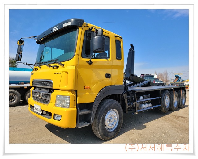 현대 24톤암롤 트럭 (현대 완성차량)2008년1월/410 마력/슬라이딩 암롤 록킹장착 / 엔진 밋션상태양호/상태양호/타이어양호/구조변경후 암롤(적재함제외) 박스없이 검사가능