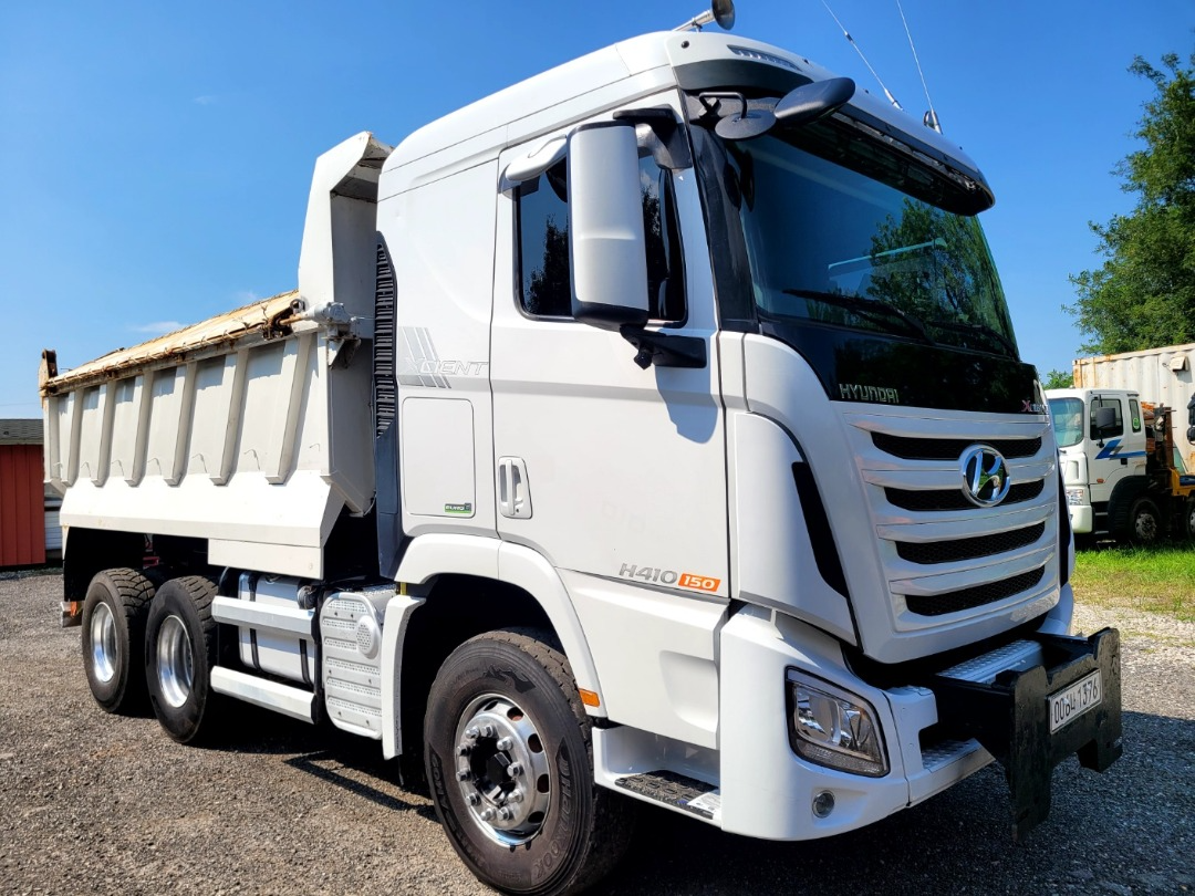 엑시언 15톤 덤프(중기 영업용)/2016년9월/410 마력/스틱/적재함 보강 하독스/2단 자동호로 장착/후방 카메라/블렉 빡스/키로수 112.062 키로/무사고/상태 최상/현대A/S 점검 완료함