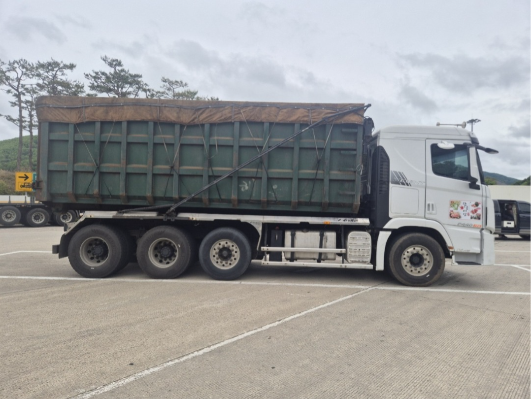 한국쓰리축 24톤 암롤/2015년각자/2014년12월/440마력/스틱 리타드장착/키로수 421.269 키로/자동호로 장착 구변/상태최상/타이어60프로 이상/압롤빡스 33루베 300만원 별도