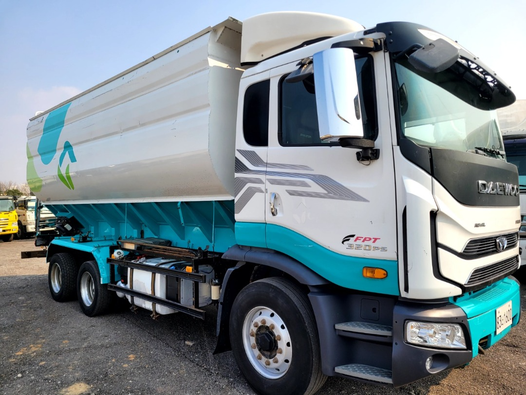 프리마 13.7톤(단축) 사료벌크/2018년각자2017년6월등록/320마력/오-토밋션/16톤~18톤 적재함/대우 써비스 에서 점검중/상태양호/키로수 69만키로/단축입니다
