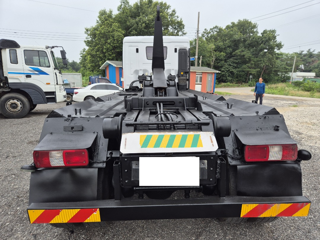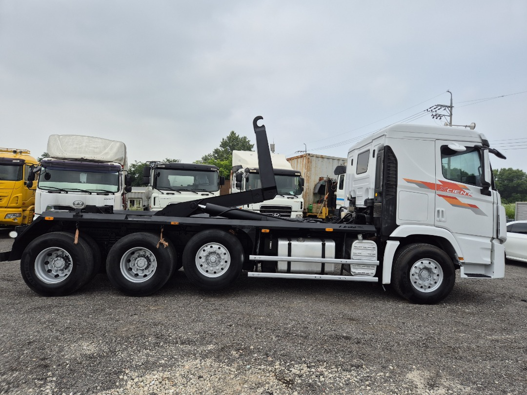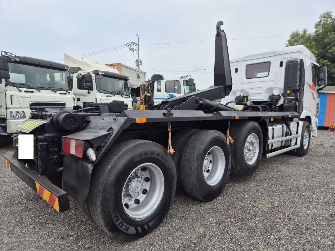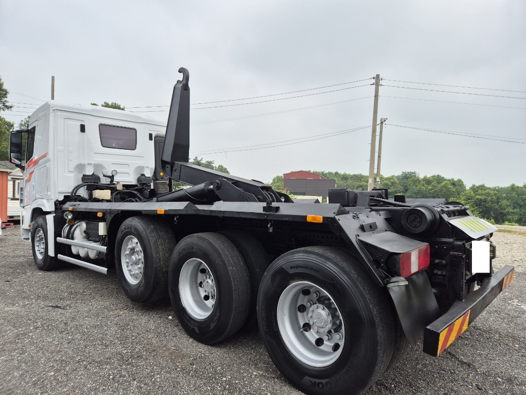 엑시언 24톤 암롤/2015년4월 등록/440 마력/리타드 장착/록킹 /신조차/캐빈(암롤)전체 부분 도색 수리/키로수 675,846 키로/상태 양호/암롤코리아 장비/타이어 70프로