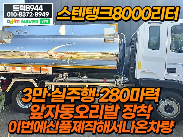 실주행, 스텐탱크8000리터, 앞자동오리발, 이번에신품제작해서나온차량입니다