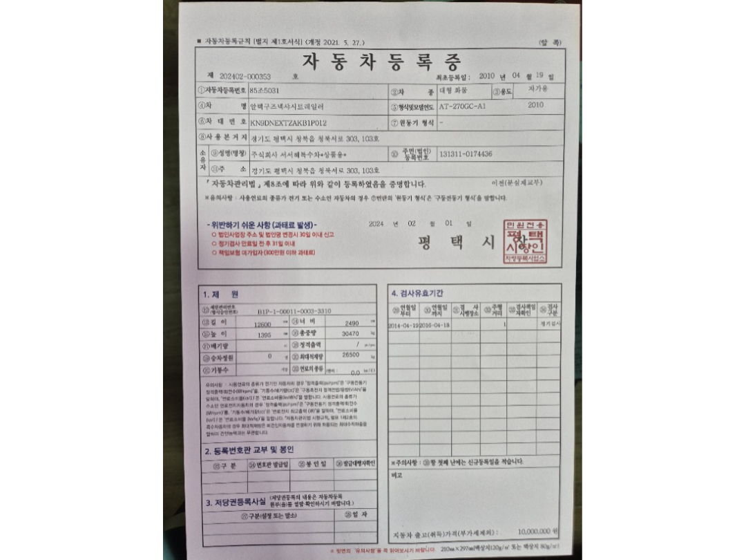 알텍 트레일러 60톤 윙바디/2010년9월식/알미늄 샷시로판매함/ 윙바디 는 구조 변경 이 않 된것임.윙길이 12400/윙넓이 2600/윙높이 외경4250/윙높이내경 3000/상태양호