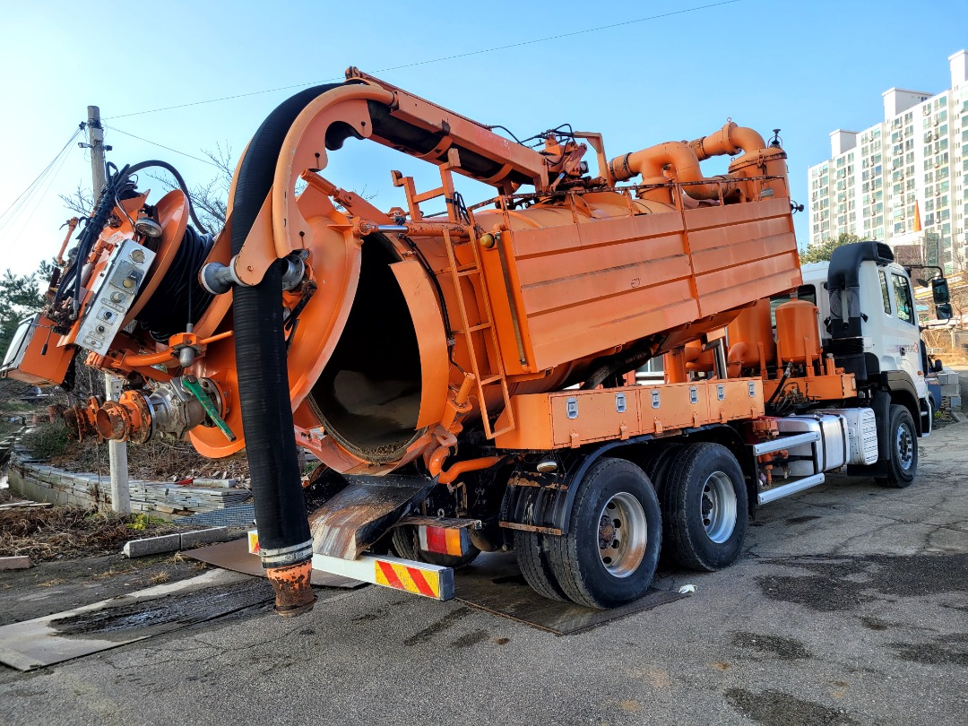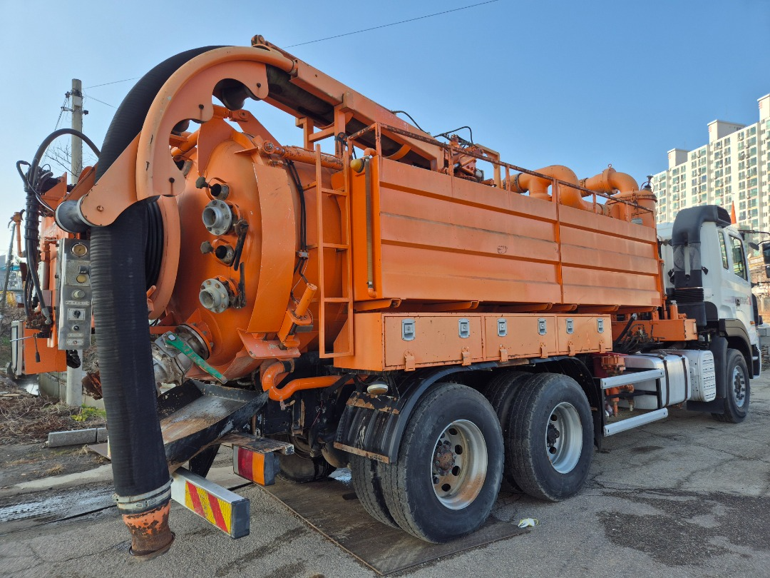 트라고 17톤 복합식 하수구 준설차/2009년7월식/410 마력/(광림 특장에 서 허가 조건으 로 신차를 제작 해 사용을 거의 하지 않코 외부에 녹만 슬어 있습니다)