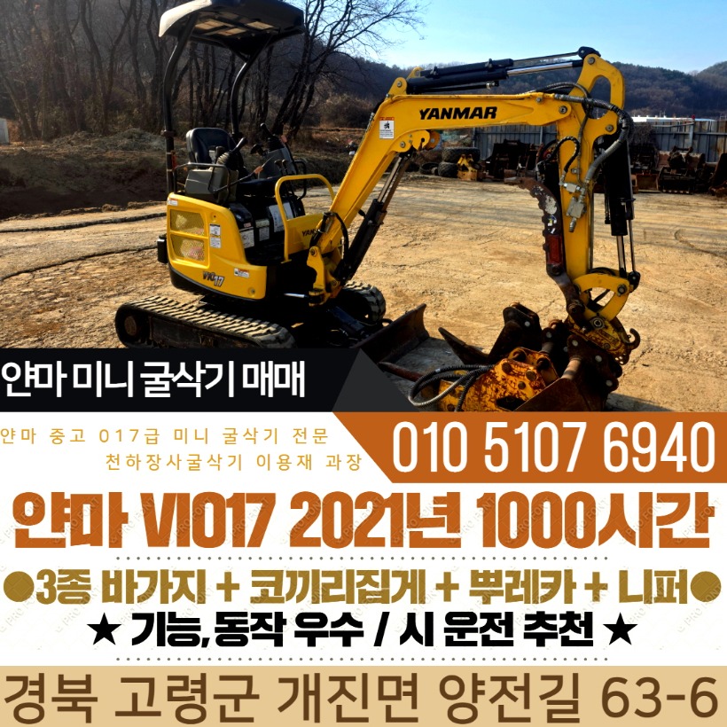 얀마 017급 미니굴삭기 VIO17 2021년 2500시간 풀세트 구성 매매