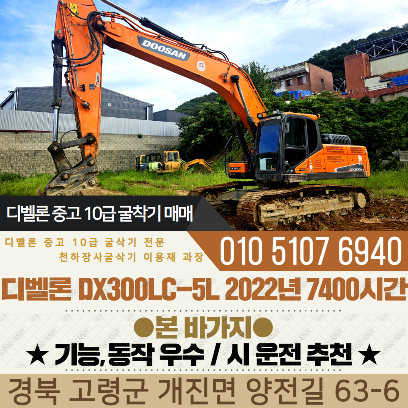 디벨론 10급 굴삭기 DX300LC-5L 2022년 7400시간 본 바가지 구성 매매