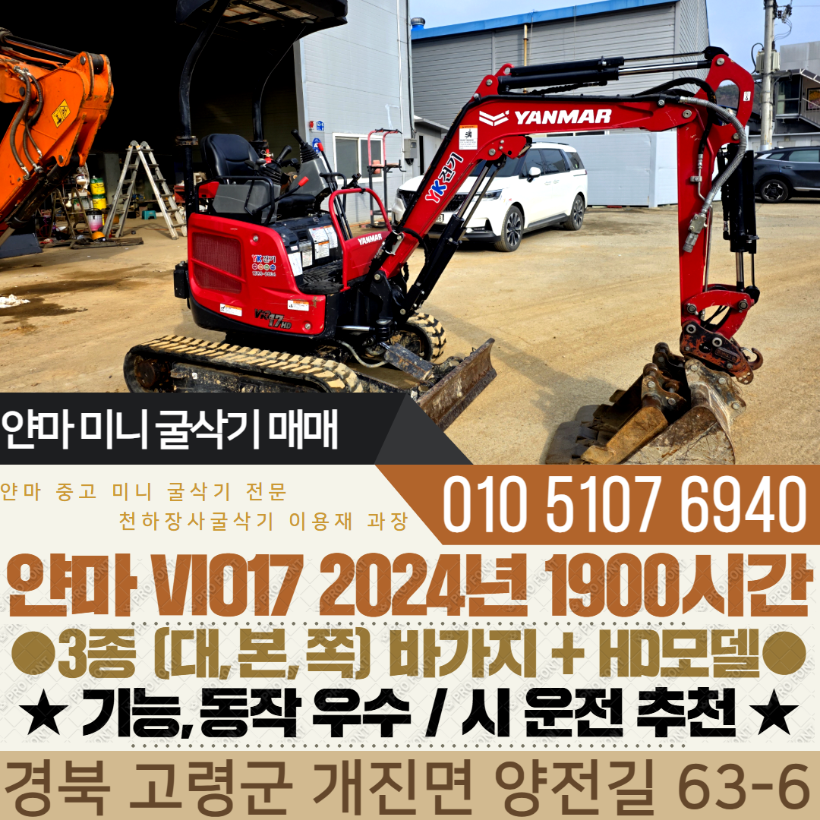 얀마 1.7톤 미니굴삭기 VIO17 HD 2024년 1900시간 3종 바가지 구성 매매