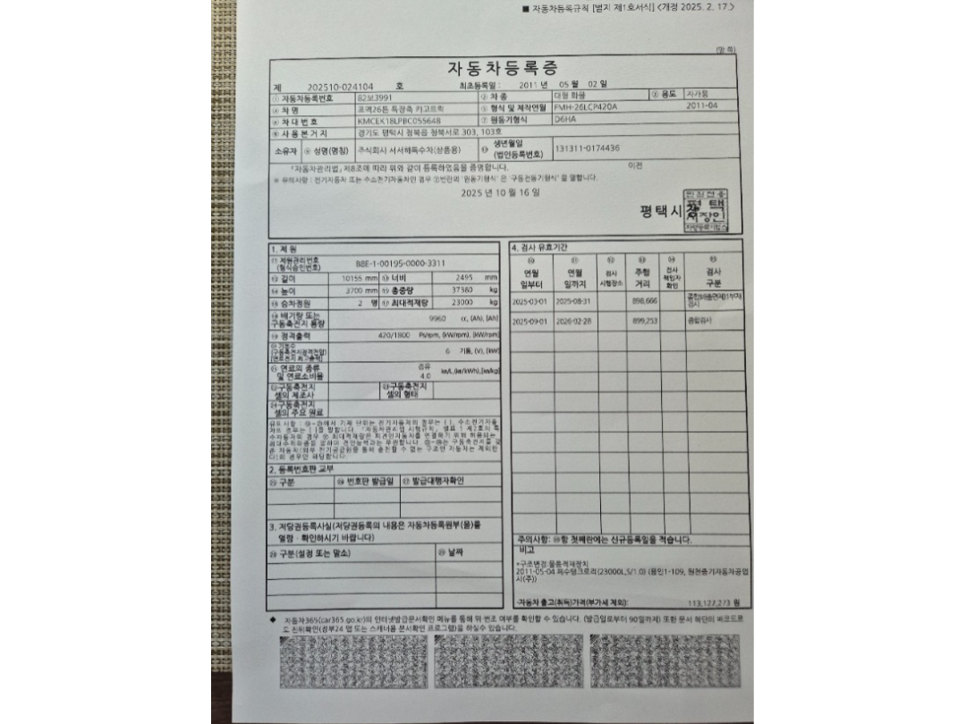 오토 앞축 스텐레스 25,000 리터 이하 2011년/07월 899,279km 경기 상품등록 2026.01.14