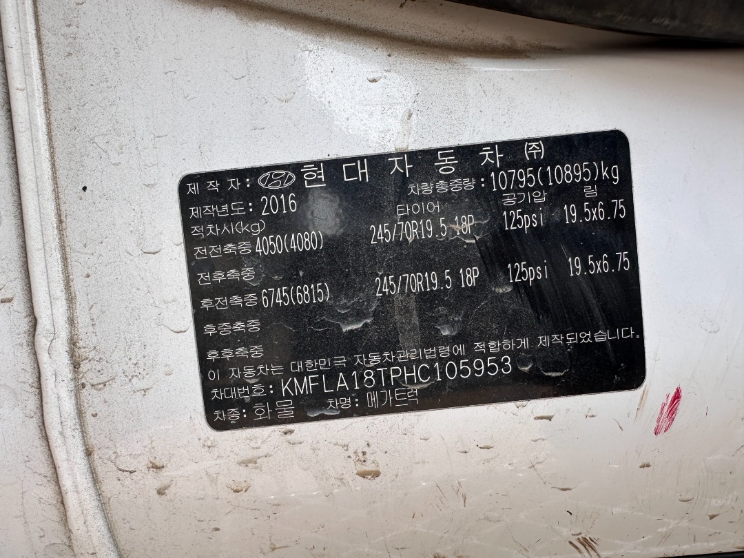 ◎ 차명 : 메가트럭 5톤 카고크레인