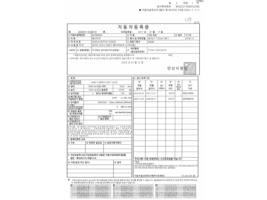 ◎ 년식 : 2017 년 (2017-01-11)