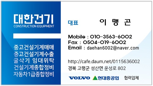 네이버, 다음 검색창에 대한건기 검색하시면 더 많은 장비 보실수 있습니다.