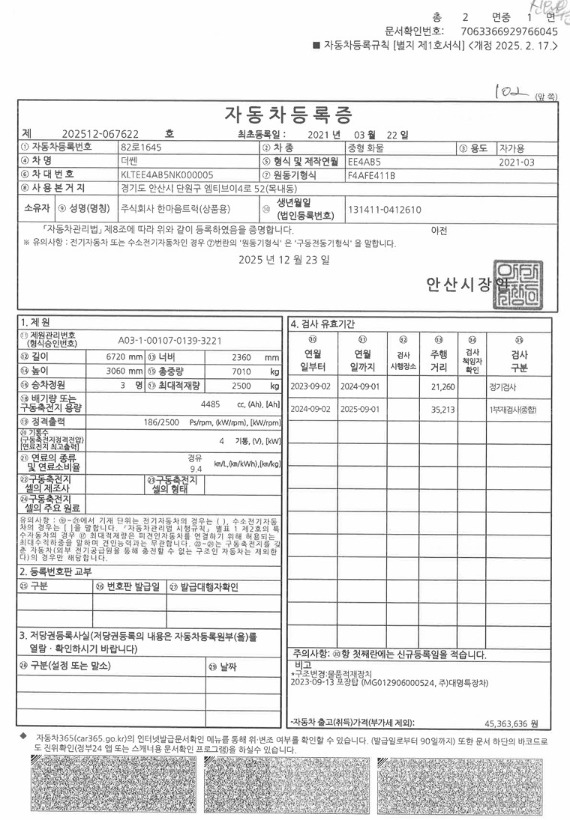 ◎ 년식 : 2022 년 (2021-03-22)