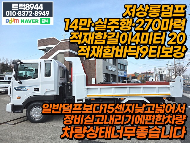 실주행, 적재함길이4M20, 적재함바닥9티보강, 일반덤프보다15센치낮고넓어서장비실고내리기에편한차량입니다