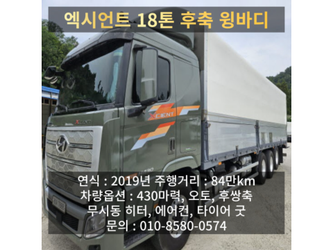 현대 엑시언트프로 윙바디18톤 84만킬로 430마력 후쌍축 (2020년형)