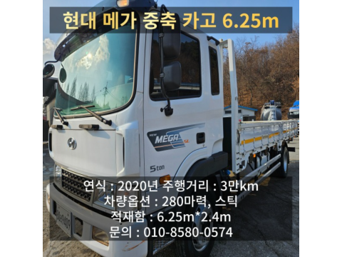 현대 메가트럭 카고 6.25m / 중축카고 / 신차급 / 타이어신품 / 짧은킬로수 5톤