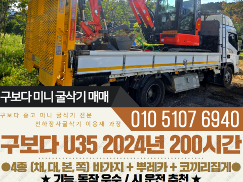 구보다 035급 미니굴삭기 캐빈형 U35 2024년 200시간 풀셋 코끼리집게 구성 매매
