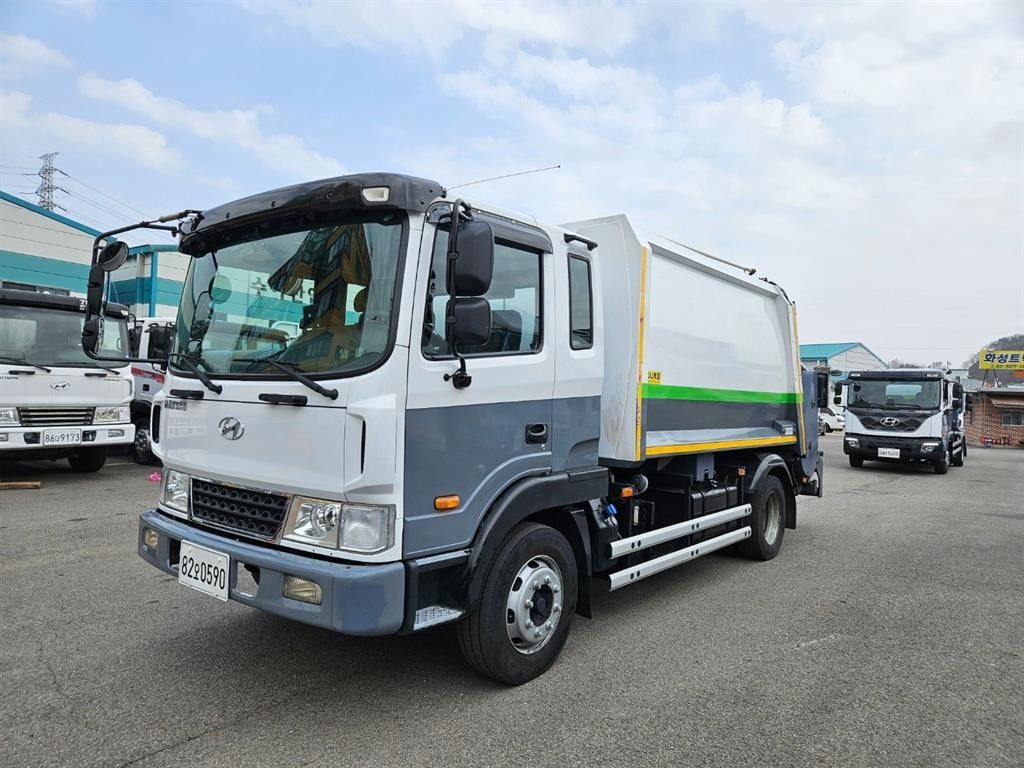 5.7톤 압착진개차 ( 덤프식 ). 가죽시트. 열선시트. 280마력. CRDI엔진.