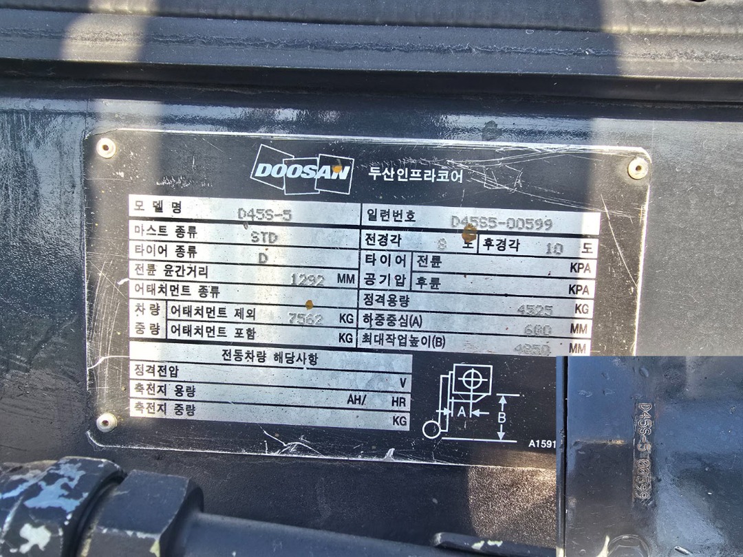 08년식7월 두산 4.5톤 지게차