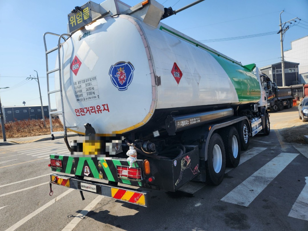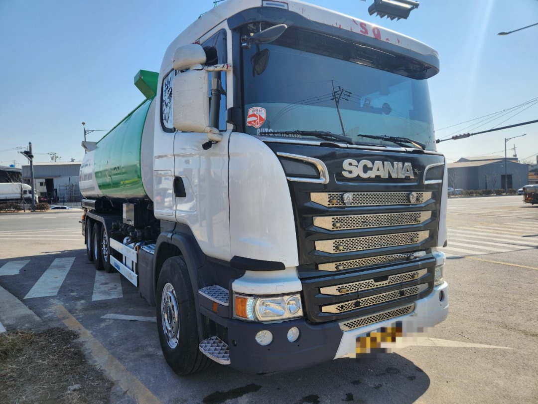 스카니아 25톤450마력 오토 완쓰리 경질류 탱크로리 3만리터 82만주행 무시동에어컨 인버터 인산철 전자렌지 탱크코리아