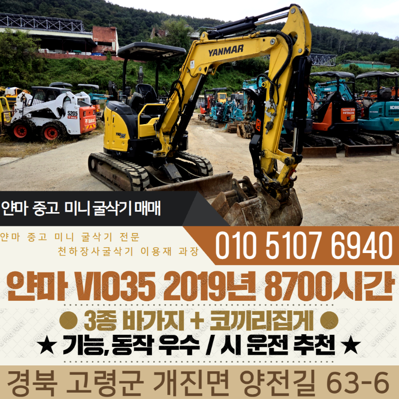 얀마 035급 미니굴삭기 VIO35 2019년 8700시간 코끼리집게 구성 매매