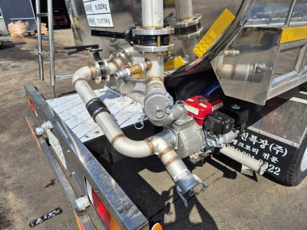 신품탱크장착 ( 8000 리터 ). 스탠탱크. 양수기장착. 앞고압/ 뒤자연살수.