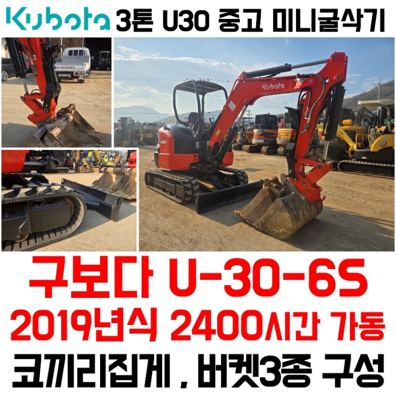 구보다 3톤 U30 2019년식 2400시간 코끼리집게 장착