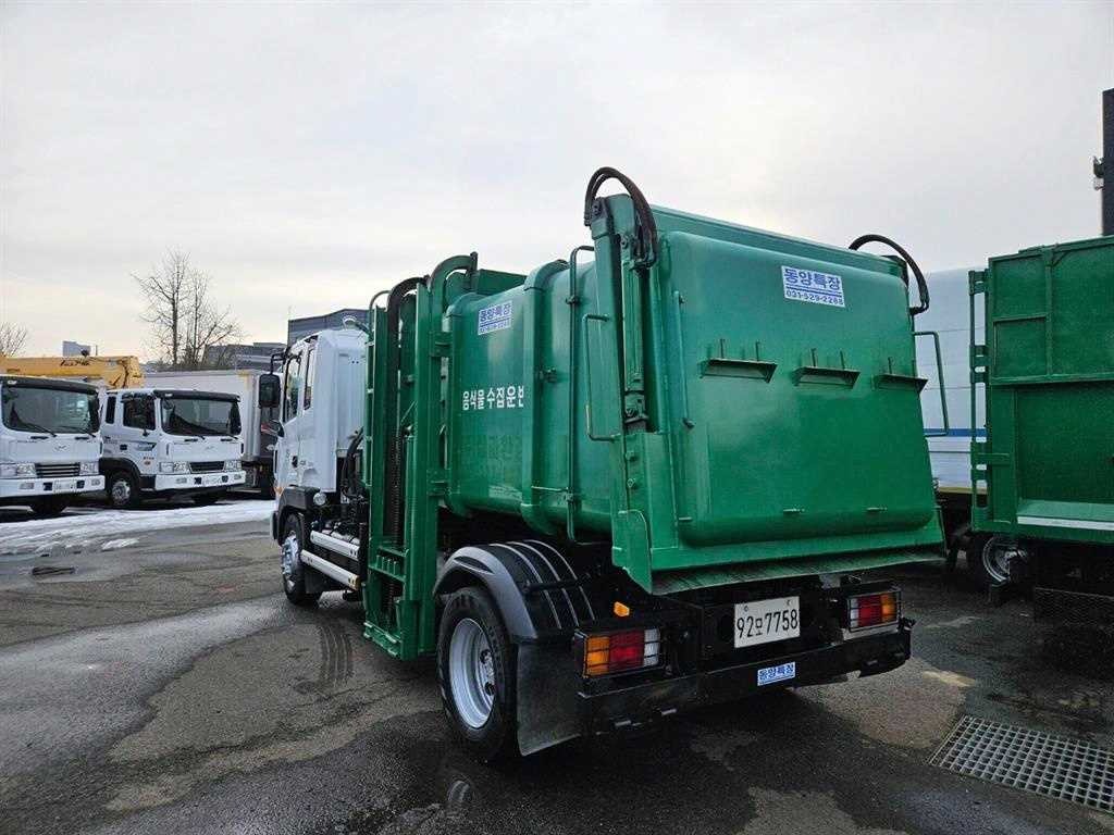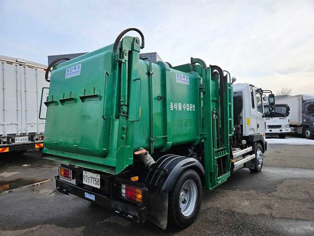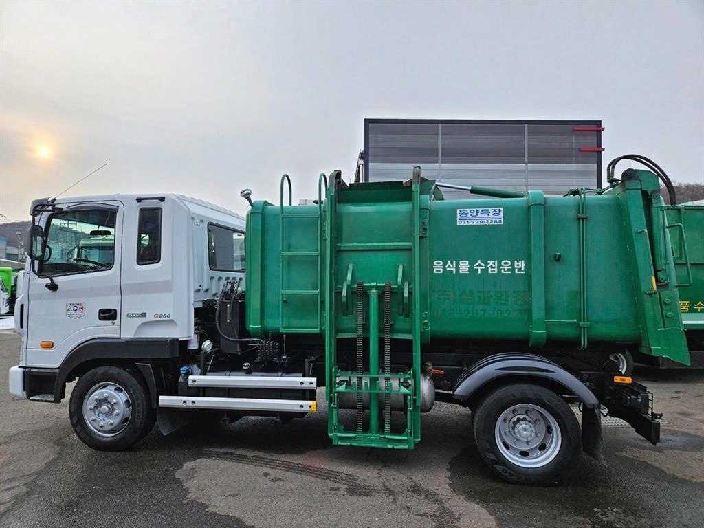 동양7.8톤 음식물수거차. 양쪽레일. 덤프식. 가죽시트. 열선시트.