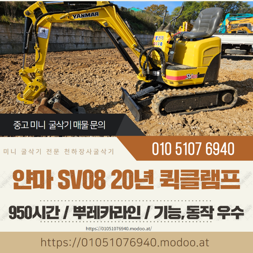 얀마 중고 1톤 미만 미니굴삭기 SV08 2020년 950시간 풀셋 구성 매매