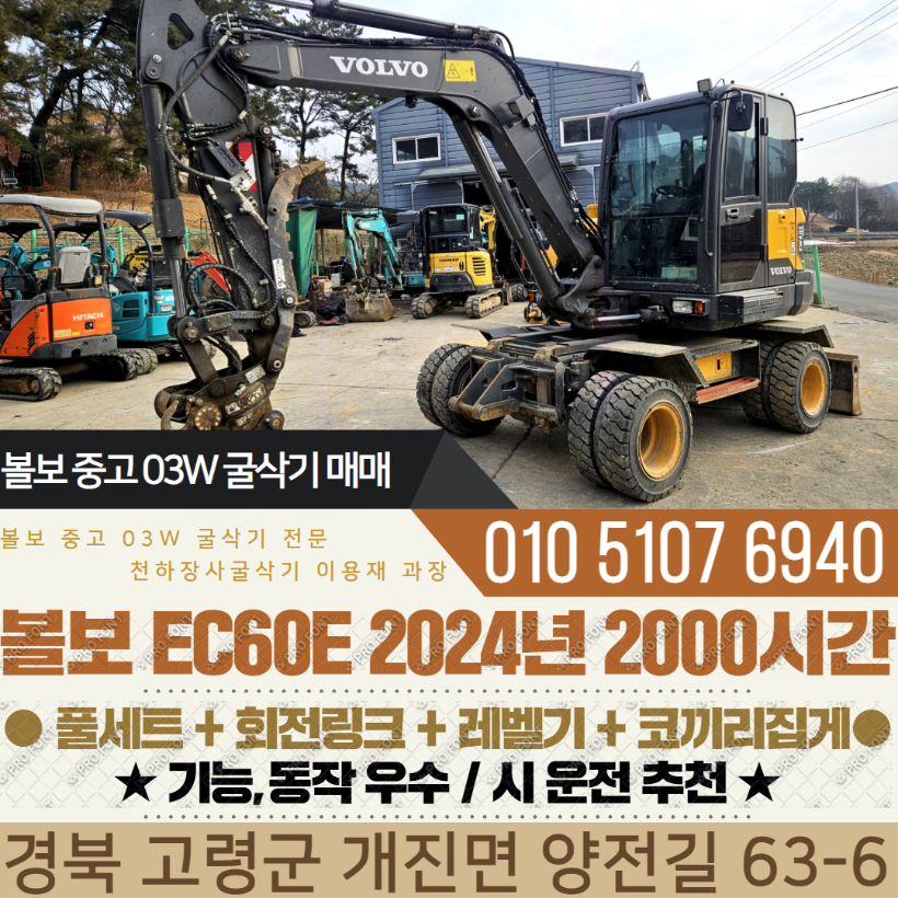 볼보 03W 굴삭기 EW60E 2024년 2000시간 풀셋 레벨기 회전링크 코끼리집게