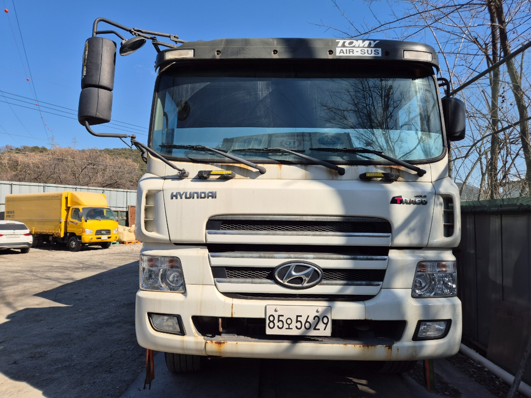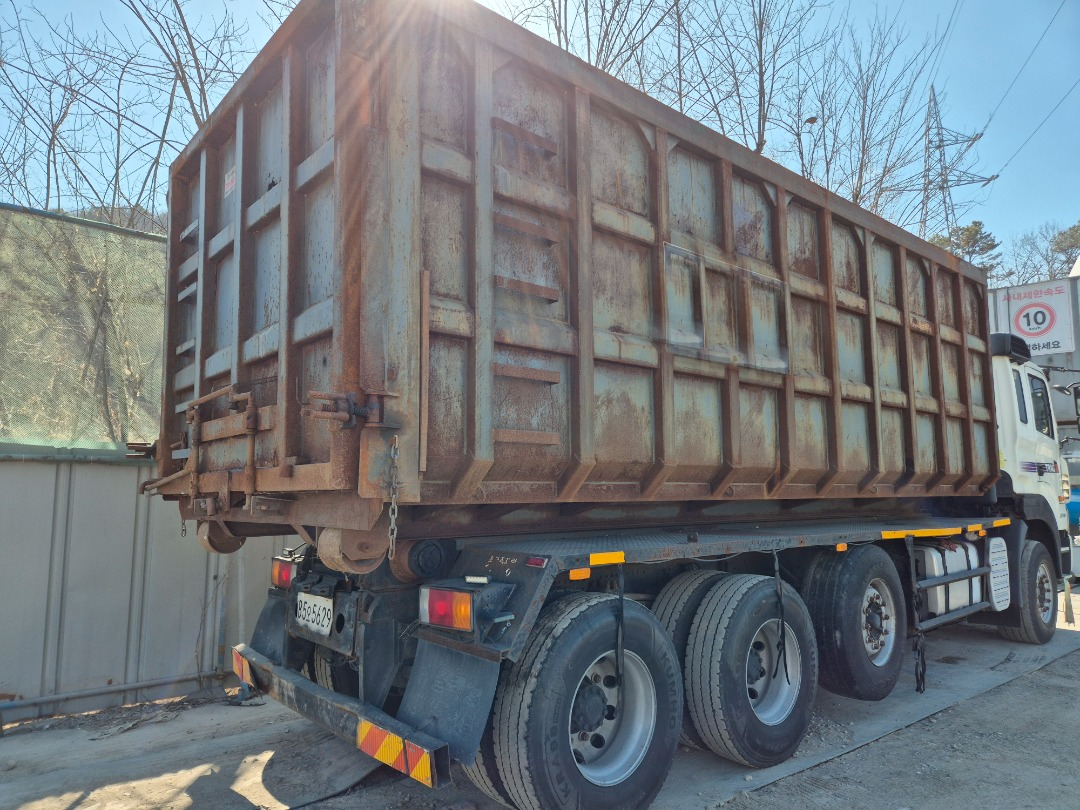 트라고 24 톤 암롤 트럭 (완쓰리 암롤 적재량 2.400))/2011년7월 등록/440 마력/리타드 장착/슬라이 딩 암롤/후방카메라장착/키로수 866.092 키로/빡스없이 검사/암롤 빡스는 없습니다/수리후 전체도색 중 임니다