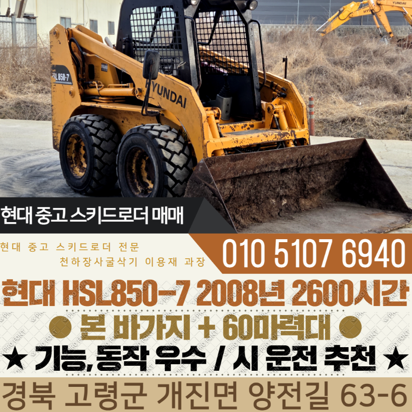 현대 농장용 스키로더 HSL850-7 2008년 2600시간 본 바가지 구성 매매
