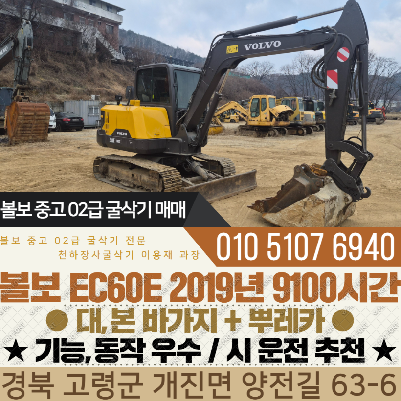 볼보 02급 굴착기 EC60E 2019년 9100시간 풀셋 구성 매매