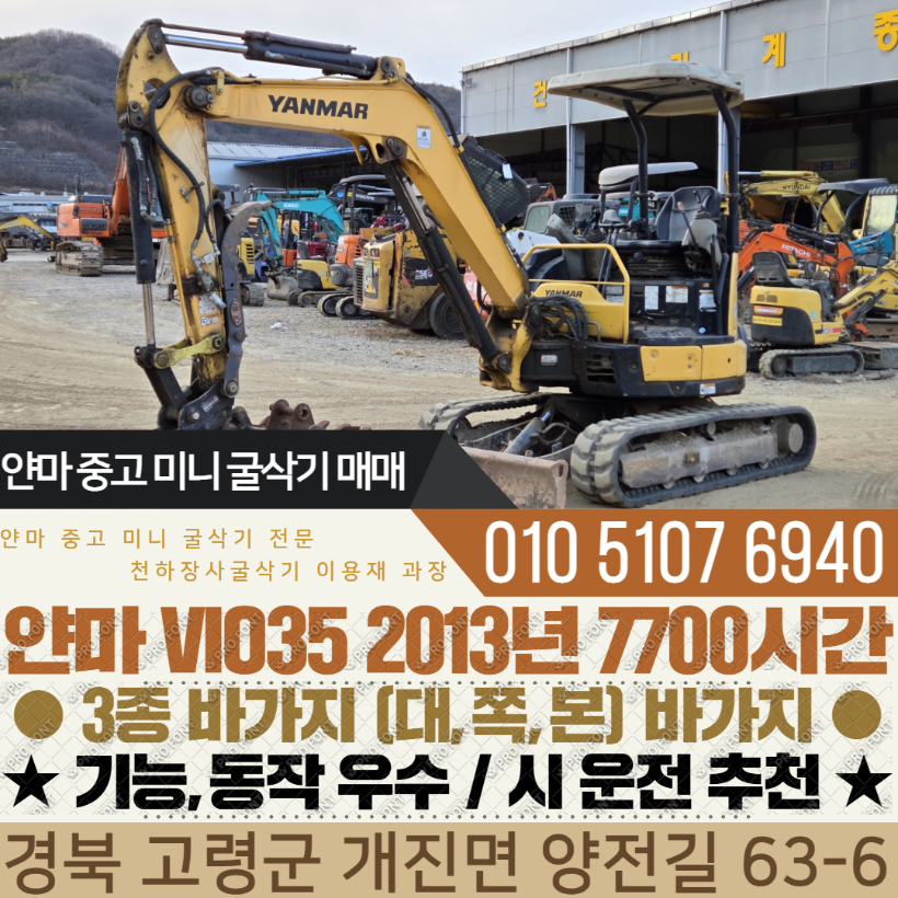 얀마 035급 미니굴삭기 VIO35 2013년 7700시간 코끼리집게 구성 매매