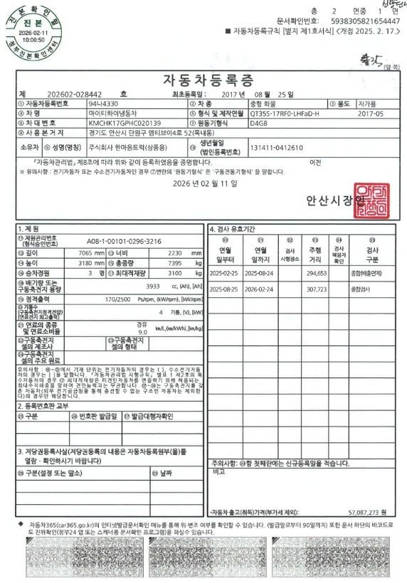 ◎ 년식 : 2017 년 (2017-08-25)