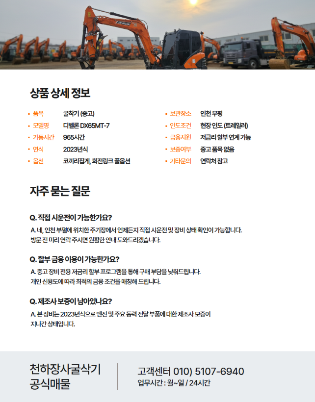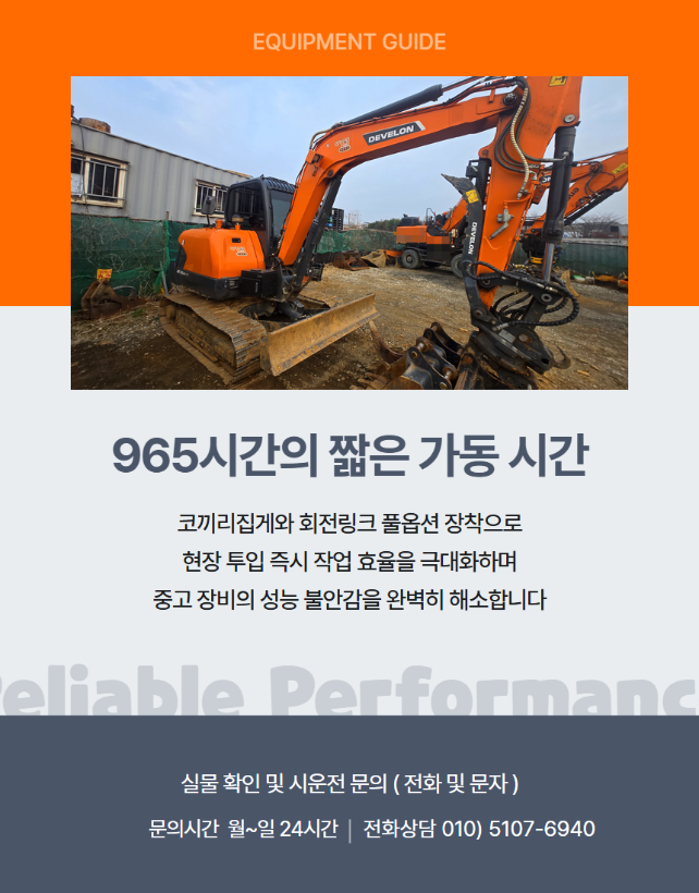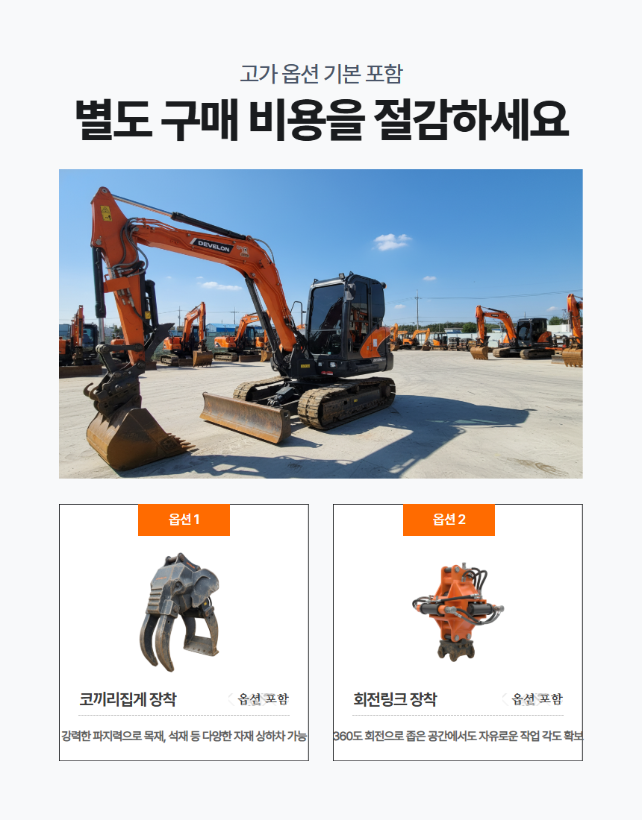 디벨론 02급 굴삭기 DX65MT-7 2023년 965시간 회전링크 코끼리집게 구성 매매