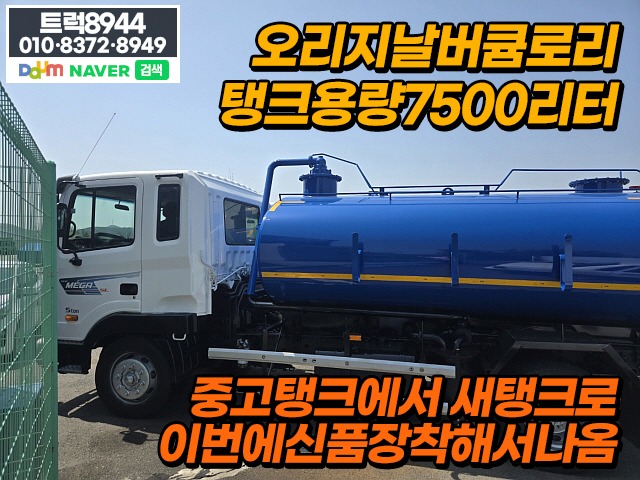 실주행, 탱크용량 7500리터, 이번에중고탱크에서신품탱크로제작해서나온차량