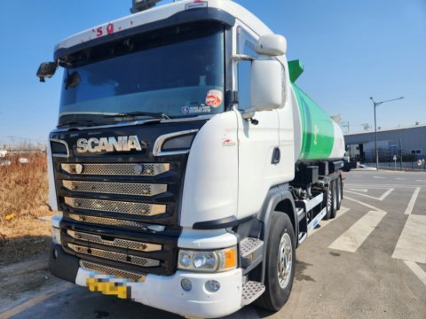 스카니아 25톤450마력 오토 완쓰리 경질류 탱크로리 3만리터 82만주행 무시동에어컨 인버터 인산철 전자렌지 탱크코리아