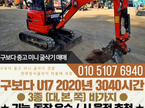 구보다 017급 미니굴삭기 U17 2020년 3000시간 3종 바가지 구성 매매