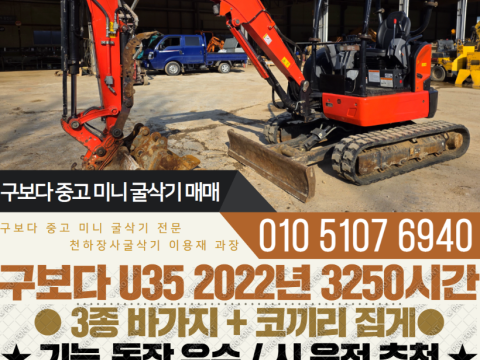 구보다 035급 미니굴삭기 U35 2022년 3250시간 3종 코끼리집게 구성 매매