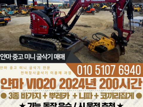 얀마 020급 미니굴삭기 VIO20 2024년 200시간 풀세트 코끼리집게 구성 매매