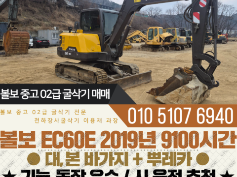 볼보 02급 굴착기 EC60E 2019년 9100시간 풀셋 구성 매매