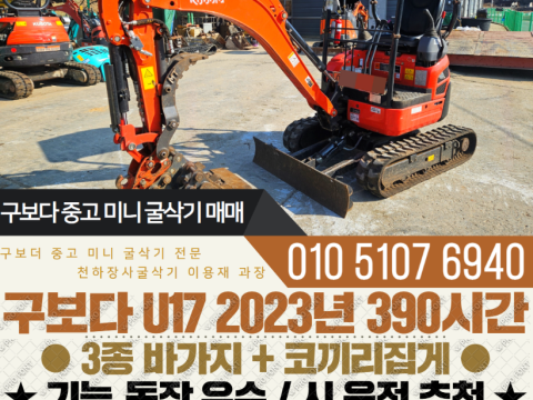 구보다 017급 미니굴착기 U17 2023년 390시간 코끼리집게 구성 매매