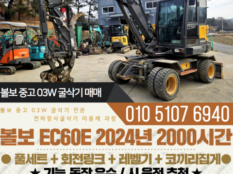 볼보 03W 굴삭기 EW60E 2024년 2000시간 풀셋 레벨기 회전링크 코끼리집게