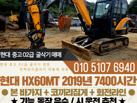 현대 02굴삭기 HX60MT 2019년 7400시간 코끼리집게 회전라인 구성 매매