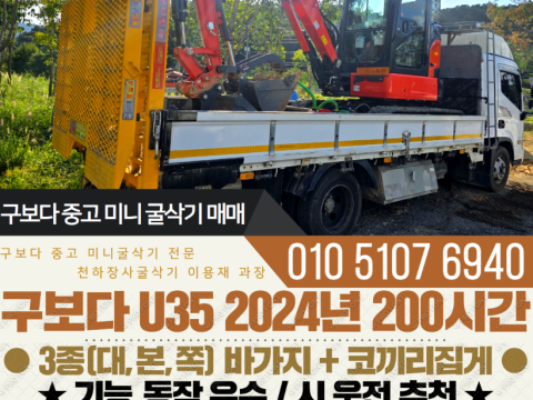 구보다 035급 미니굴삭기 캐빈형 U35 2024년 200시간 코끼리집게 구성 매매
